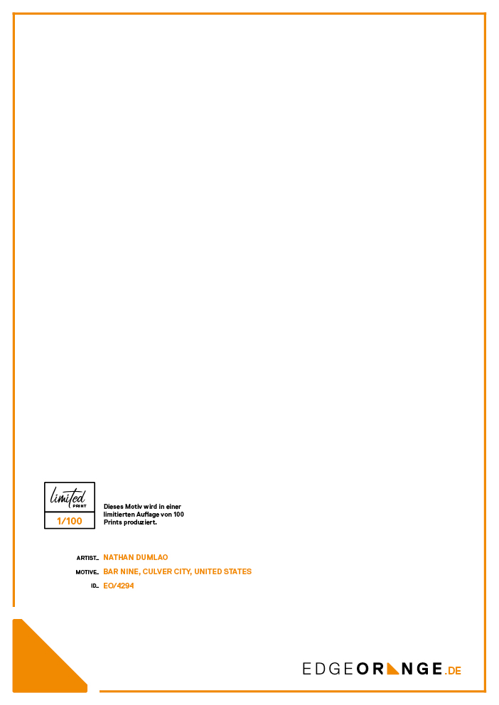 Front Rückseite Rückseite Limited Print-Label mit Produktionsnummer und Informationen zum Motiv und Künstler. Auf Wunsch mit persönlicher Widmung. Mehr erfahren Größen S – (29,7 x 42 cm) M – (42 x 59,4 cm) XL – (59,4 x 84,1 cm) EO/4294 Bar Nine, Culver City, United States EUR 59.00 Noch 82/100 Prints verfügbar * Größe: -- Auswählen -- S (DIN A3 / 29,7 x 42 cm) M (DIN A2 / 42 x 59,4 cm) (+ EUR 20.00) XL (DIN A1 / 59,4 x 84,1 cm) (+ EUR 40.00) Montage: GAEKKO Galerie-Aufhängung (EUR 9.90) Rückseite: Mit persönlicher Widmung (EUR 14.90) Artikel wurde zum Warenkorb hinzugefügt Bestellung abschließen Kaffee, Tasse, Kaffeebohnen, Hintergrund Ähnliche Produkte Ansehen